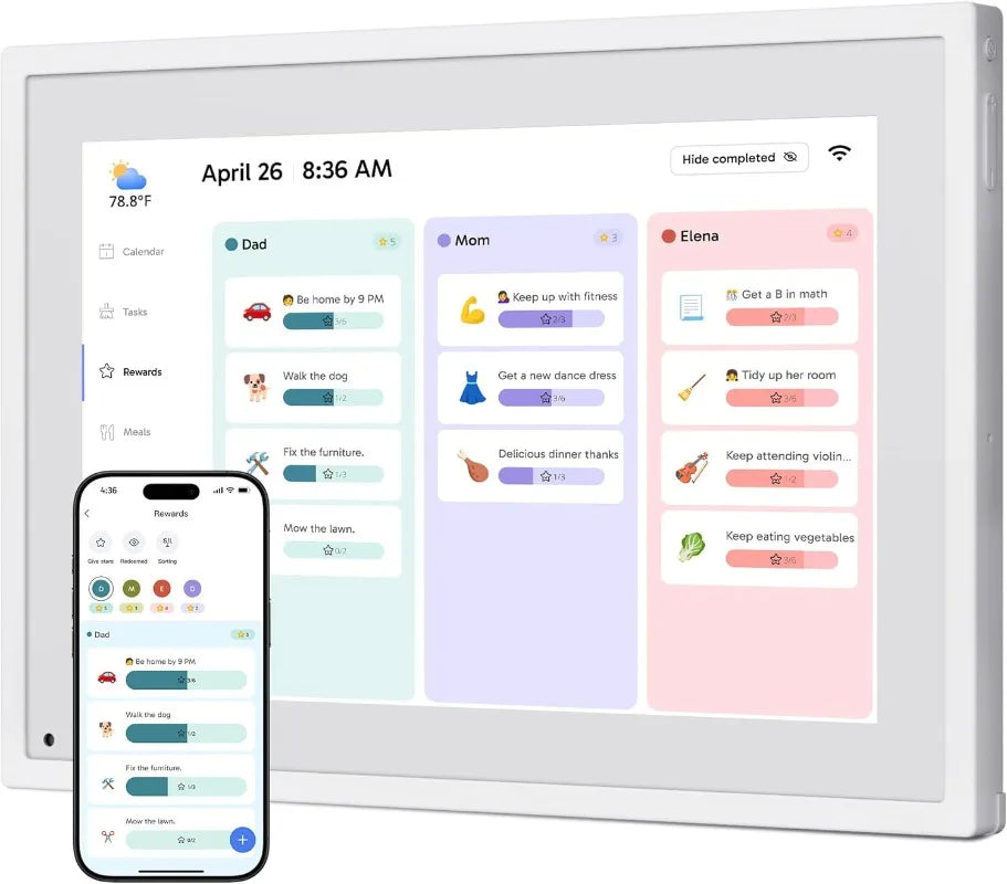 Interactive Task & Reward System – Assign chores, set goals, and award stars to keep kids (and adults!) motivated while making responsibilities fun.