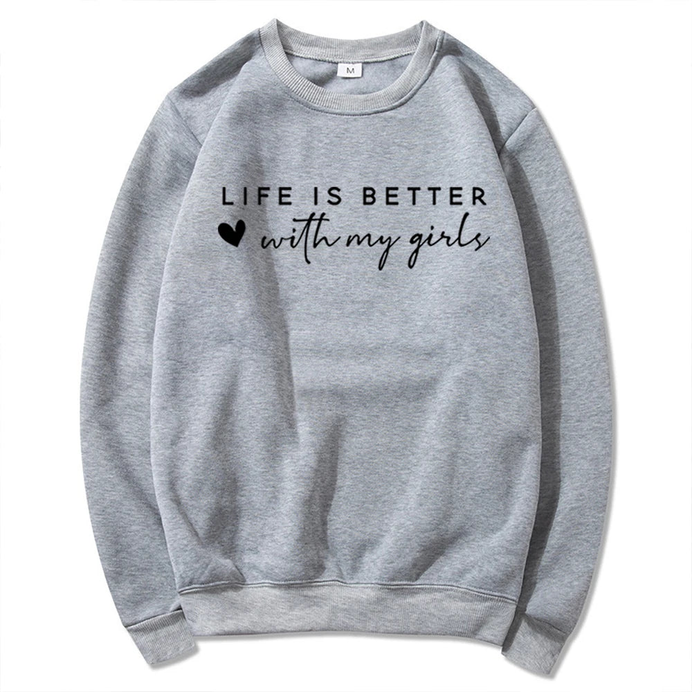Celebrate the joy of motherhood in style with our Life Is Better with My Girls Sweatshirt. Designed for proud girl moms, this cozy crewneck combines comfort and love in one. Made with a soft cotton-blend fabric, it features a relaxed fit, ribbed cuffs, and a classic round neckline—perfect for everyday wear.